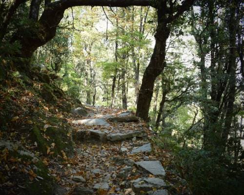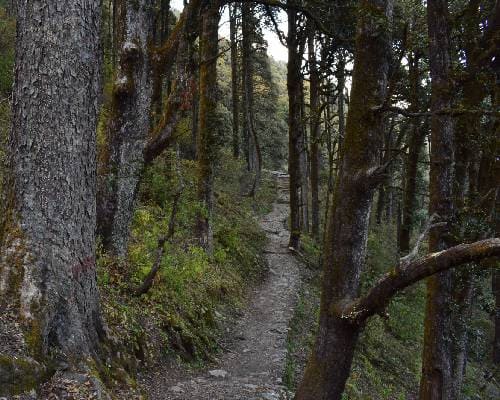 oaks and pines we reach to goi village which is the mid point of the trek,as we move further you can see a glimpse of